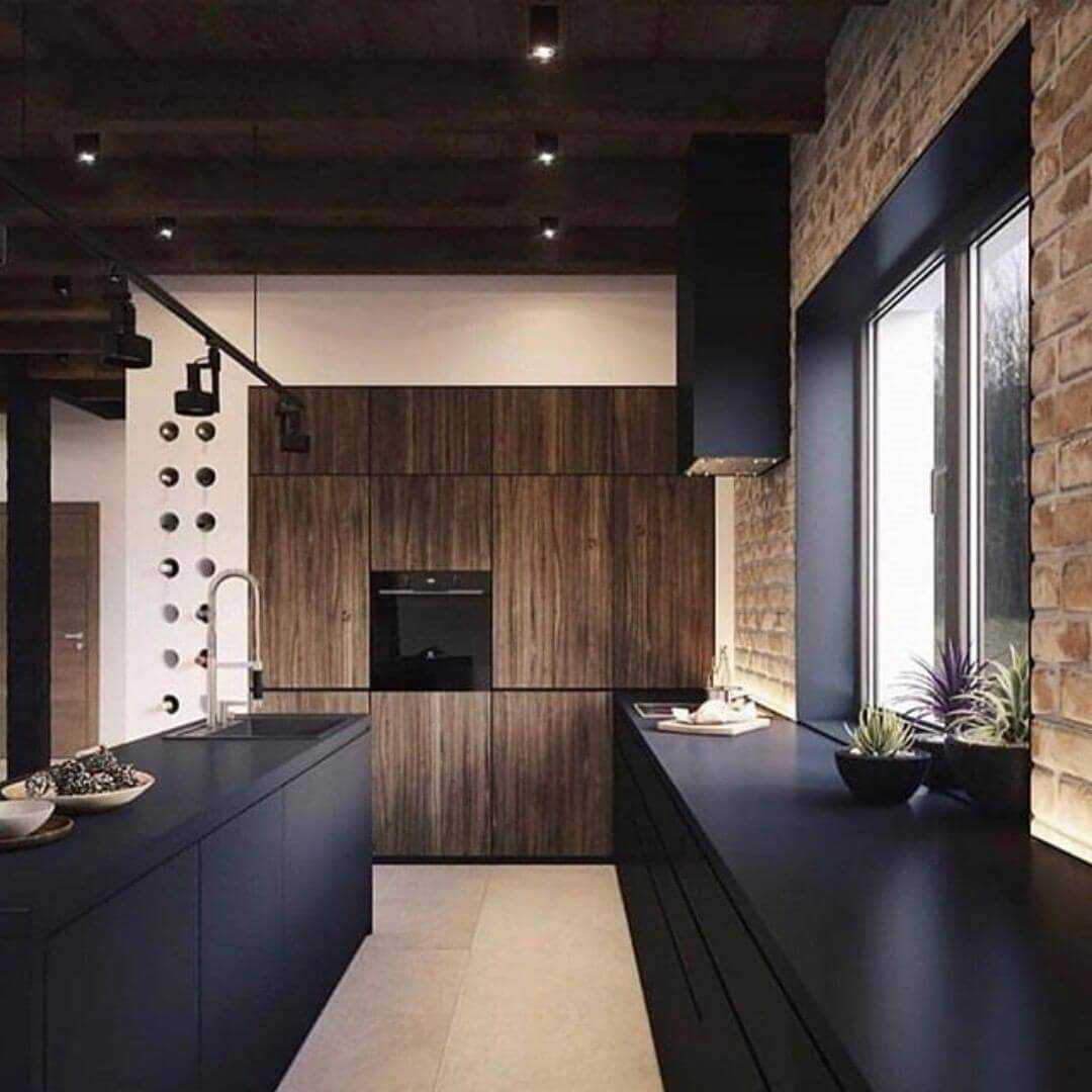 СОВЕТ: один из самых популярных коричневых оттенков –венге. Он прекрасно контрастирует с бежевыми цветами, создавая стильный и современный интерьер кухни темного коричневого цвета.