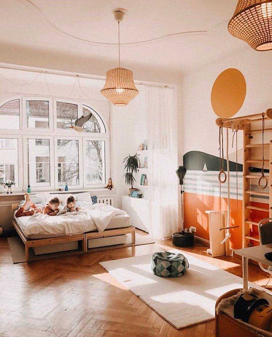 Светлые древесные оттенки в детской комнате.