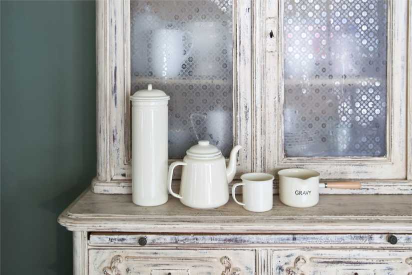 Полки для чашек и прочих мелочей заполнят атмосферу уютом.