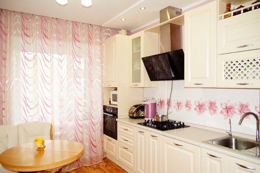 Идеальный вариант для тех, кто ценит простоту, функциональность и элегантность. Обустроить такое помещение довольно просто, для отделки стен можно использовать любые материалы: штукатурку, моющиеся обои, гипсовые панели, керамическую плитку. Светлые тона наполнят кухню легкостью, сделают ее более просторной.