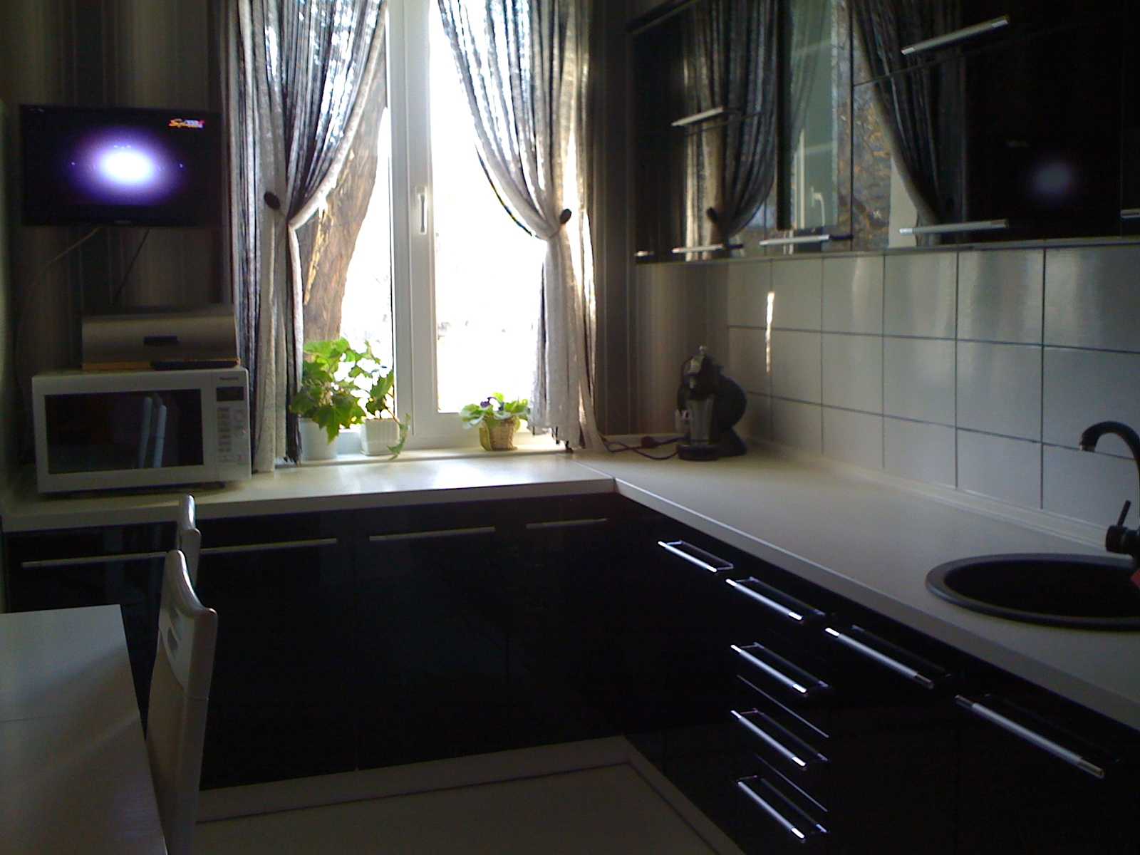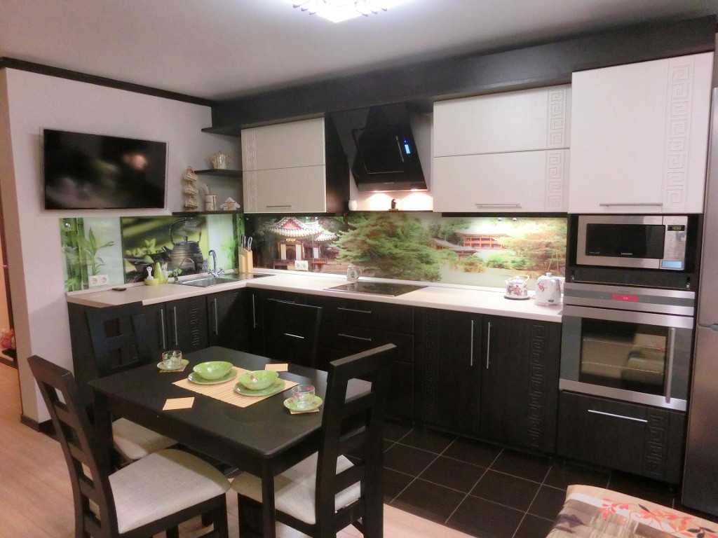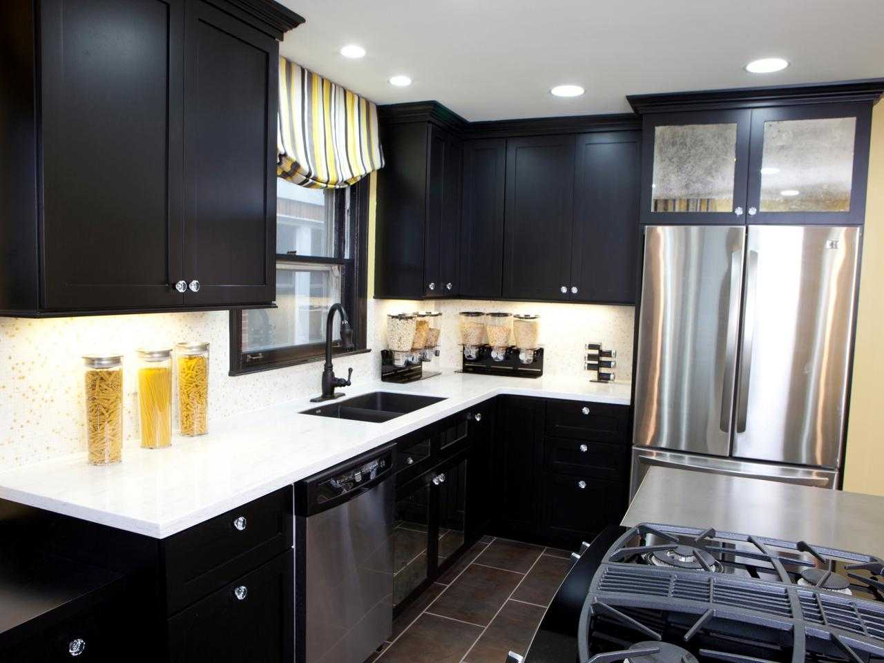 Хай-тек. Этот стиль основан на ярких контрастах, поэтому идеальным решением для него будет сочетание темных деталей интерьера со светлыми. Например, черный кухонный гарнитур будет великолепно смотреться в композиции с белым цветом стен и фартуком цвета металлик. Однако черный и другие темные оттенки также сочетаются и с яркими цветами, такими, как красный, лаймовый, оранжевый или ярко-сиреневым