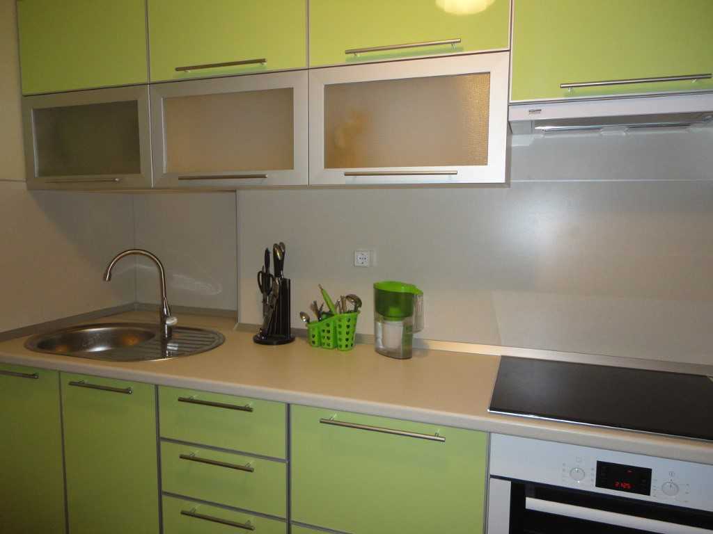 Для фартука используются такие материалы, как закаленное стекло, мозаика, металл.
