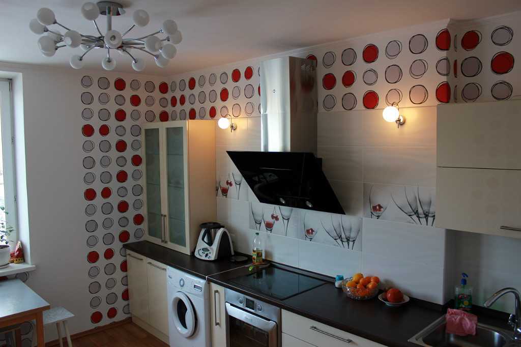 Для кухни чаще всего выбирают кафельную плитку, но холодная керамика не всякому по душе, альтернатива — моющиеся обои. Они облегчают процесс уборки. Лучше всего для кухни покупать обои из категории супермоющихся и устойчивых к трению. Хорошим выбором являются флизелиновые под покраску или стеклообои. Если бюджет не позволяет – недорогие моющиеся, но их срок эксплуатации будет недолгим.