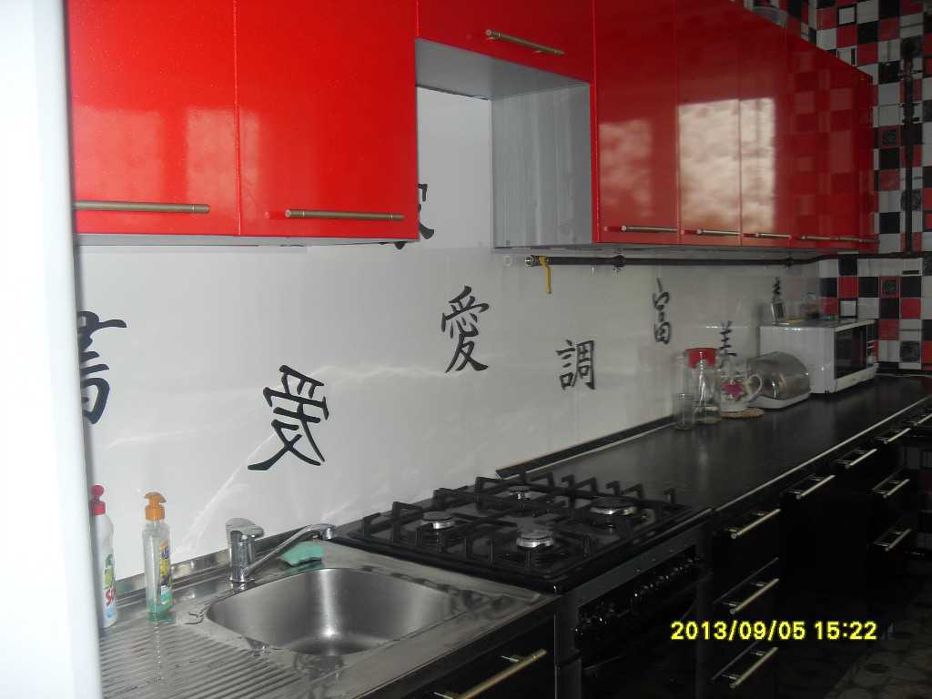 Варианты красного фартука для кухни