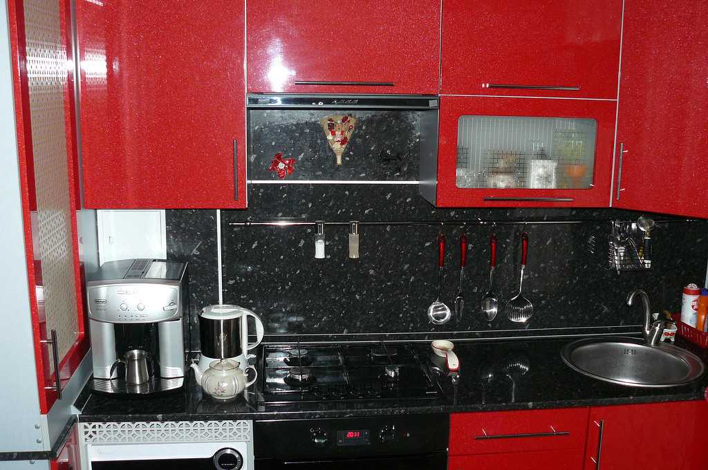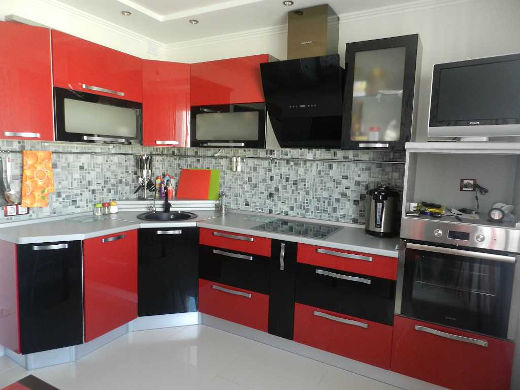 Кухонный гарнитур — как лучше сочетать красно-черную палитру