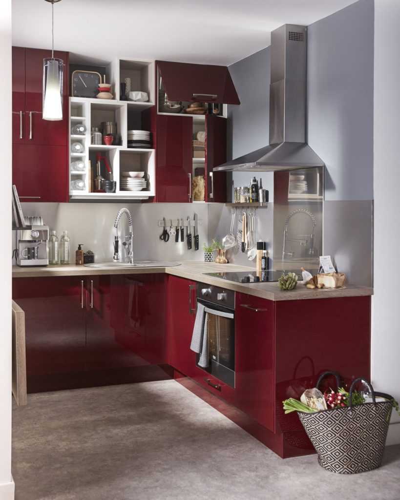 Глянец или мат для кухни в красных тонах