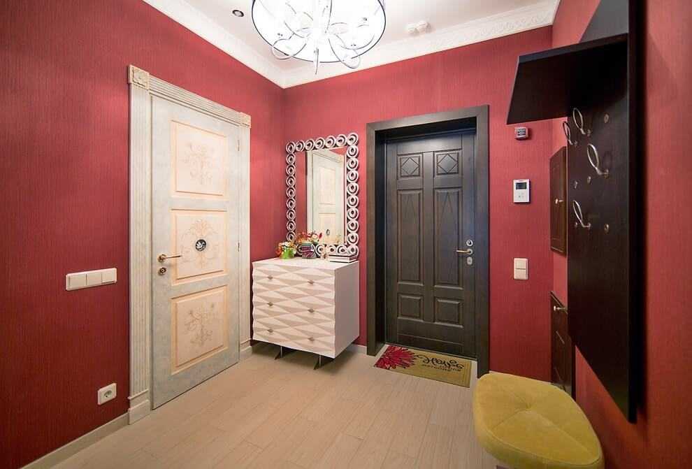 Для коридора популярным вариантом является сочетание красного с белым или серым цветом.