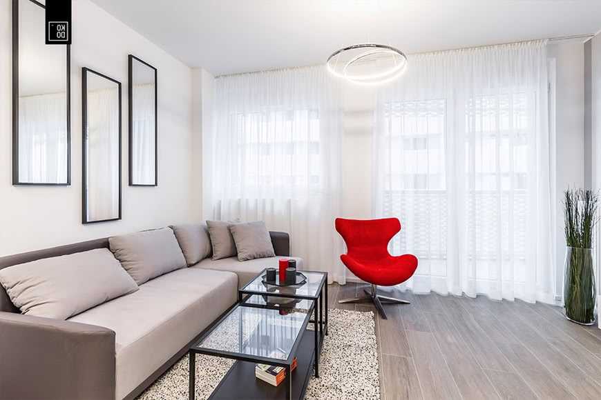 Красному же доверена роль акцентных включений, привлекающих или отвлекающих внимание. Чаще всего его добавляют в виде штор и текстиля