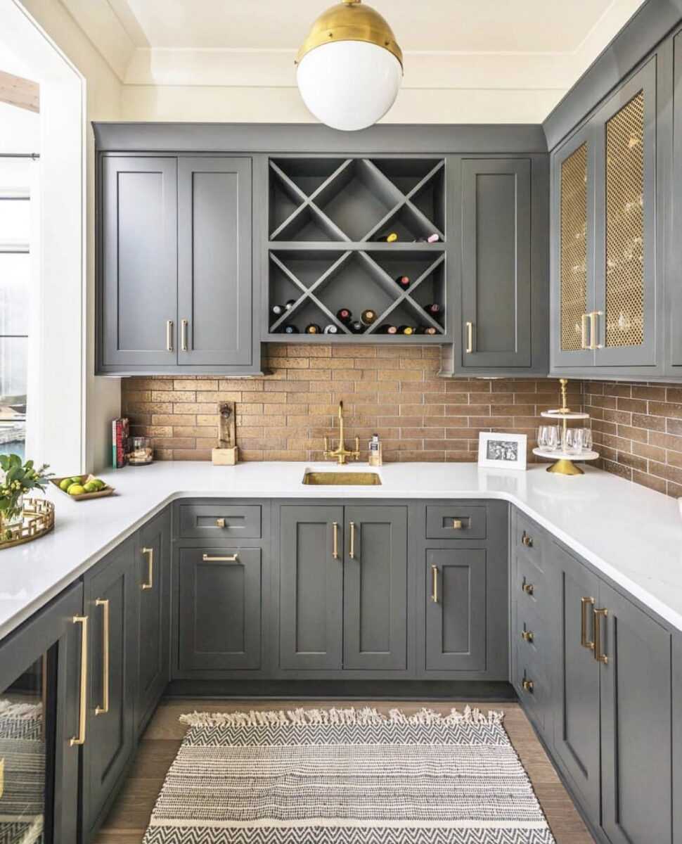 П-образная планировка позволяет создать большое количество мест хранения и рабочих поверхностей. Ее несложно подстроить под особенности помещения, варьируя расположение модулей гарнитура. Она ускорит и облегчит все кулинарные процессы.