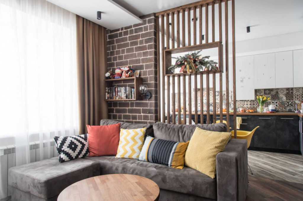 Альтернативным решением является частичное совмещение двух комнат, когда перегородку демонтируют примерно до середины (по высоте или по длине). Образующееся пространство позволяет организовать интересное зонирование с использованием гипсокартонных листов; в других вариантах разделять функциональные зоны помогают ширмы, раздвижная конструкция, стойка для бара или просто элегантная шторка.