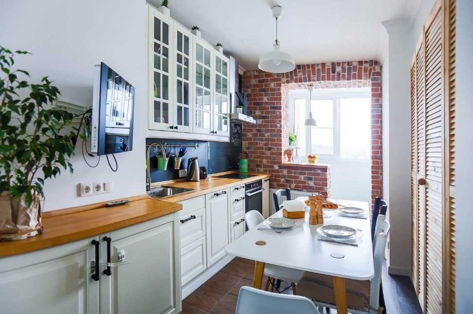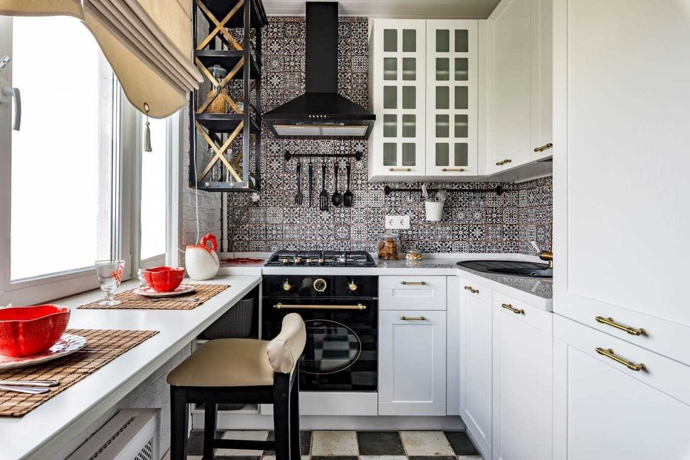 Например, у окна можно расположить компактную обеденную зону, которой могут служить пара стульев и стол, трансформирующийся в подоконник. Если площадь кухни совсем маленькая, то помогут мобильные, раскладные и выдвижные предметы мебели. Кроме того, табуреты можно заменить барными стульями, а столешницу воздушной конструкцией, закрепленной на стене.