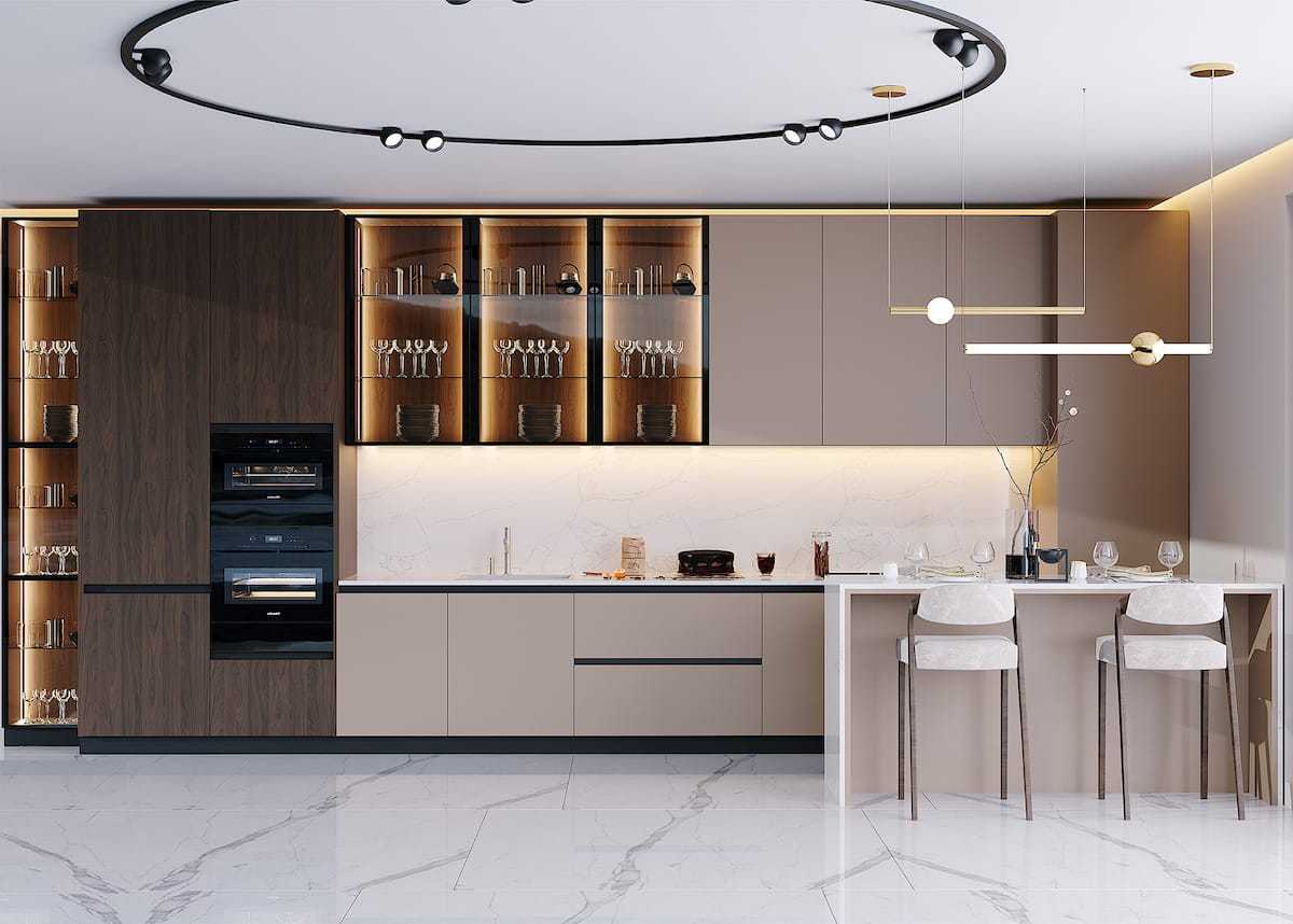 Дизайн кухни с приточным освещением.