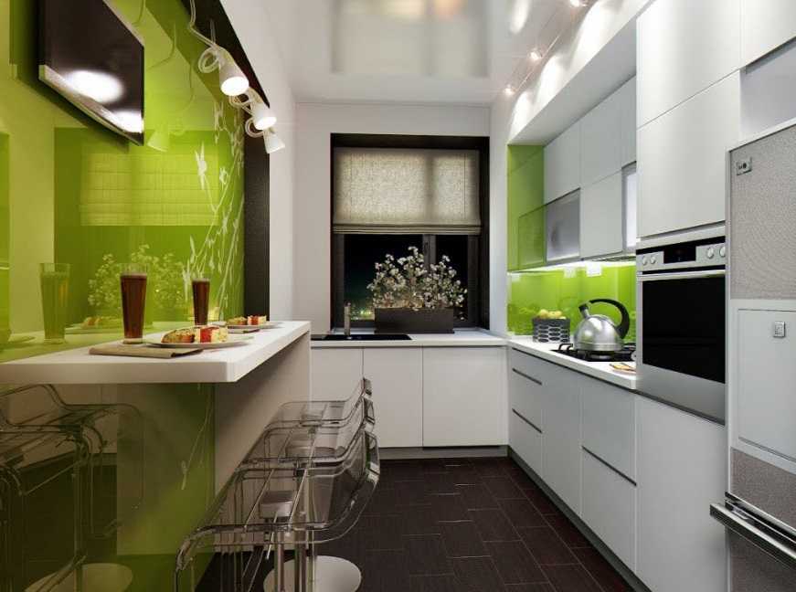 Кухонная мебель в интерьере узкой кухни