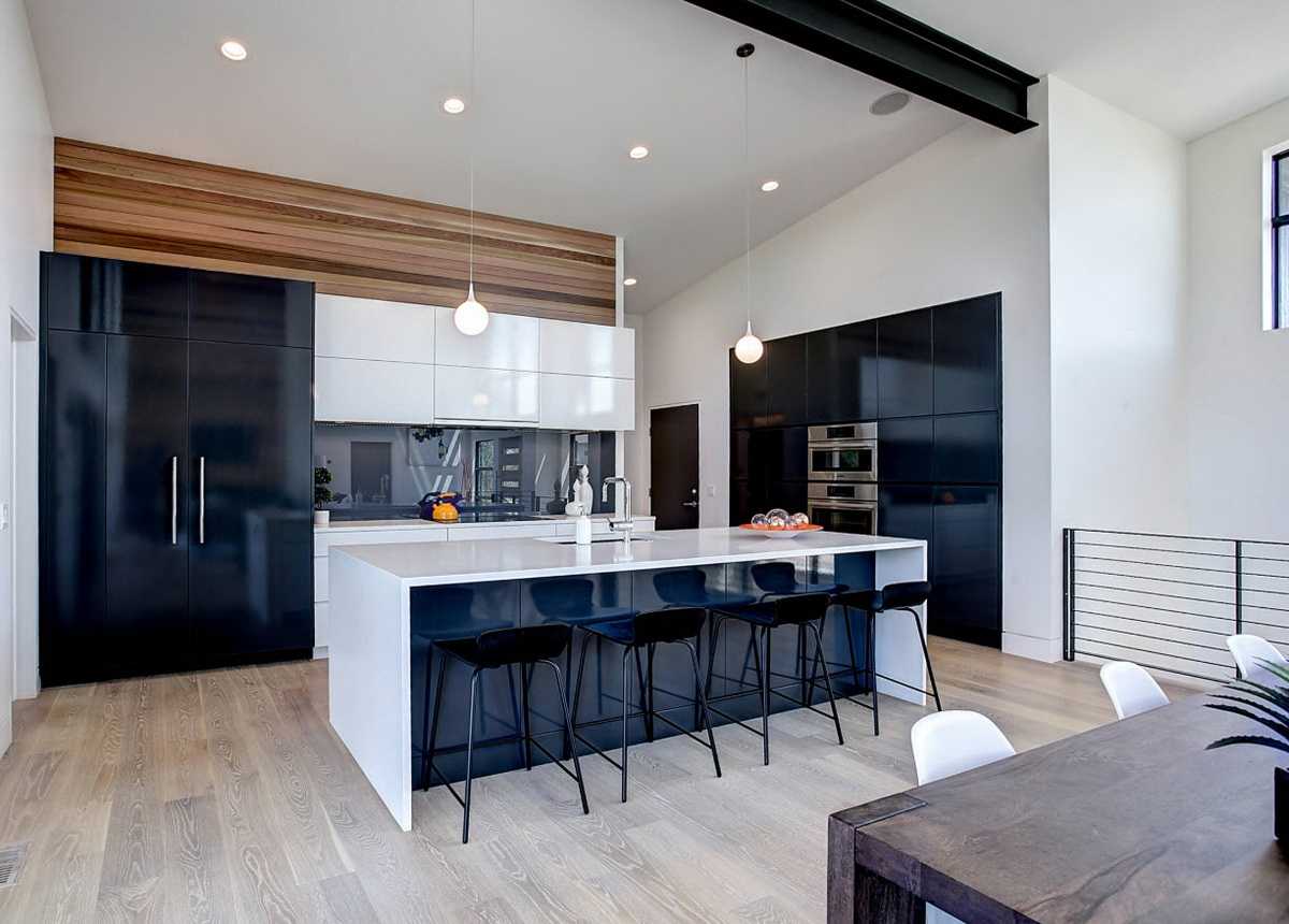 Это умная, утонченная и забавная комбинация, которая создает стиль и элегантность. Черно-оранжевая кухня – это естественное сочетание: апельсиновый добавляет бодрости и визуальной яркости, а черный разграничивает пространство и придает комнате ощущение классовости. Используемое количество черного и апельсинового часто зависит от общего размера пространства.