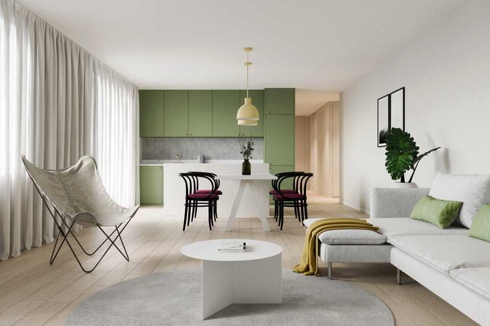 - Во-первых, его можно уверенно назвать модным. Зеленый в интерьерах является трендом на протяжении нескольких лет.
