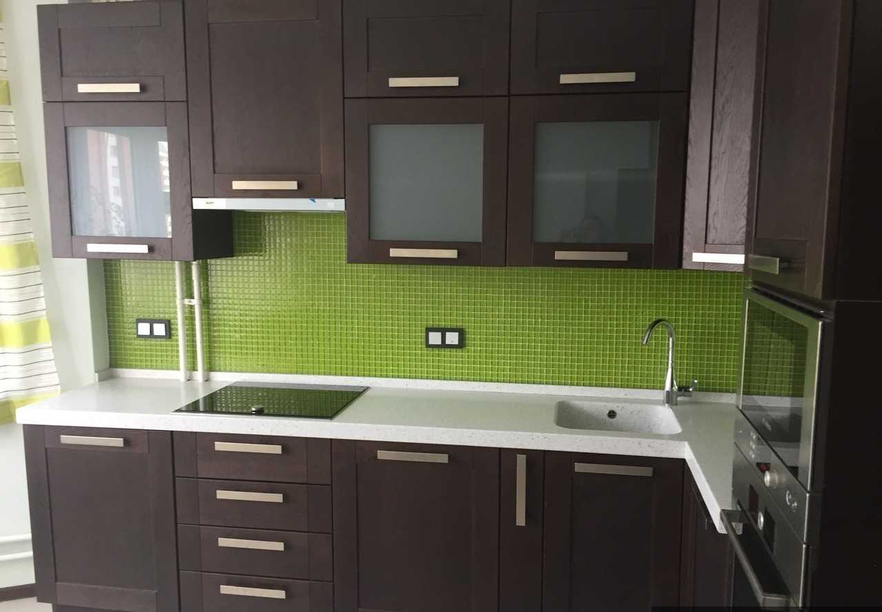 Фасады на кухне оливкового оттенка в последнее время стали пользоваться спросом. Они могут быть изготовлены из самых различных материалов.