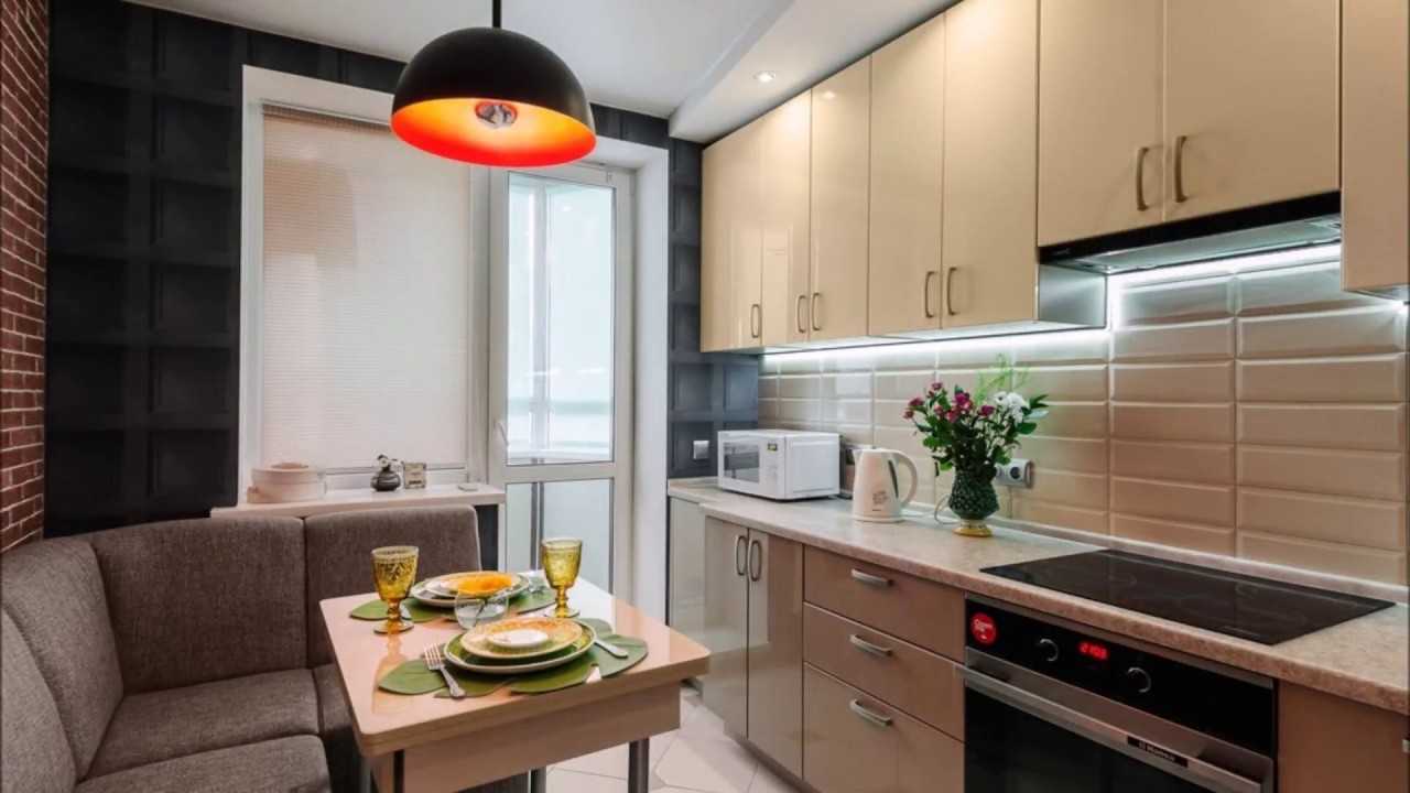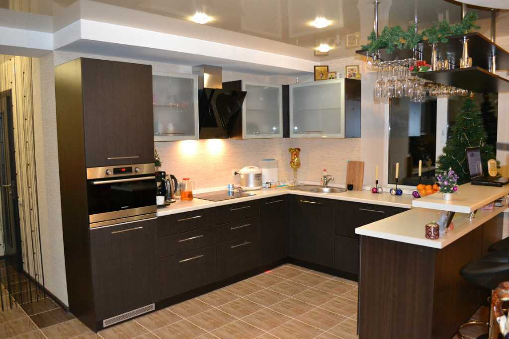Шоколадный гарнитур на фоне бежевых стен: оптимальный дизайн для кухни