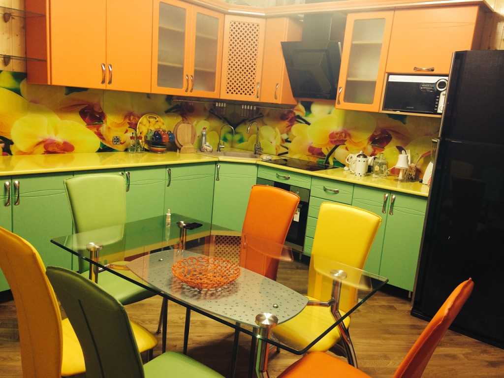 Основным правилом в создании интерьера – это рифма. Она может определяться сочетанием цветов, орнаментов, текстур и т.д. К примеру, кухни цвета кофе с молоком идеально рифмуются с цветом апельсина.