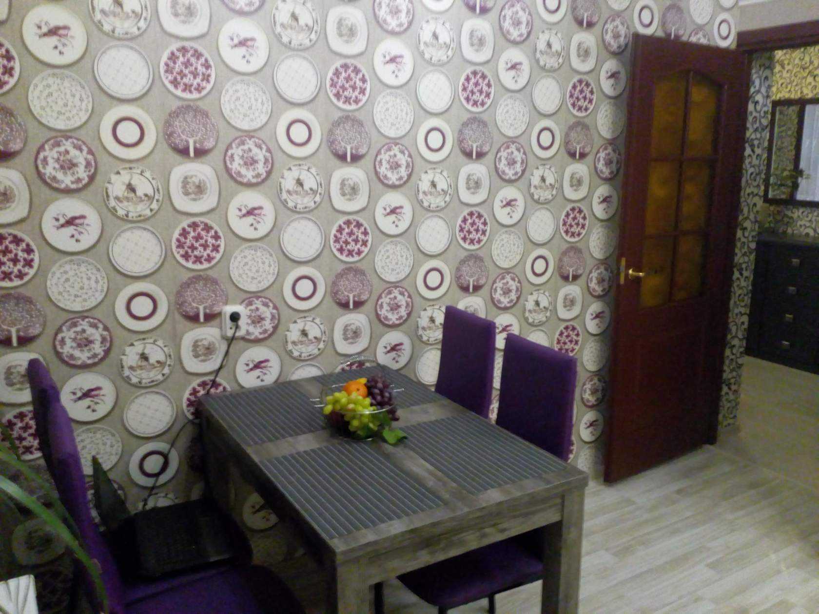 Для обеденной зоны можно выбрать вариант и попроще – пару полос с ярким, контрастным рисунком. Это полоска или крупный растительный орнамент для классической кухни, абстракция для современной отделки, мелкий цветочек для рустикальной обстановки.