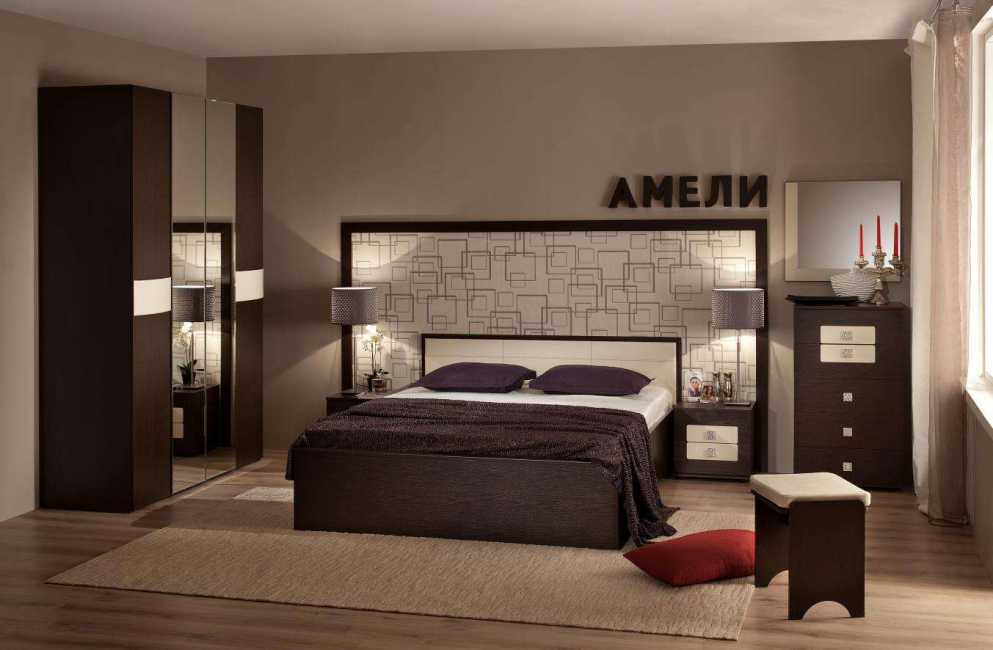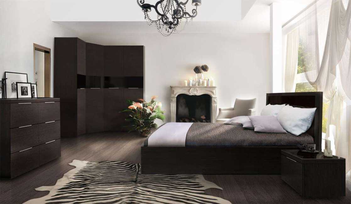 спальня — при подборе мебели темно-коричневого тона важно определиться заранее со стилевым решением декора. Строгий интерьер стиля минимализм отлично гармонирует с коричневой мебелью, а вот прованс с его романтизмом и утонченностью не сможет выигрышно оттенить такие предметы интерьера