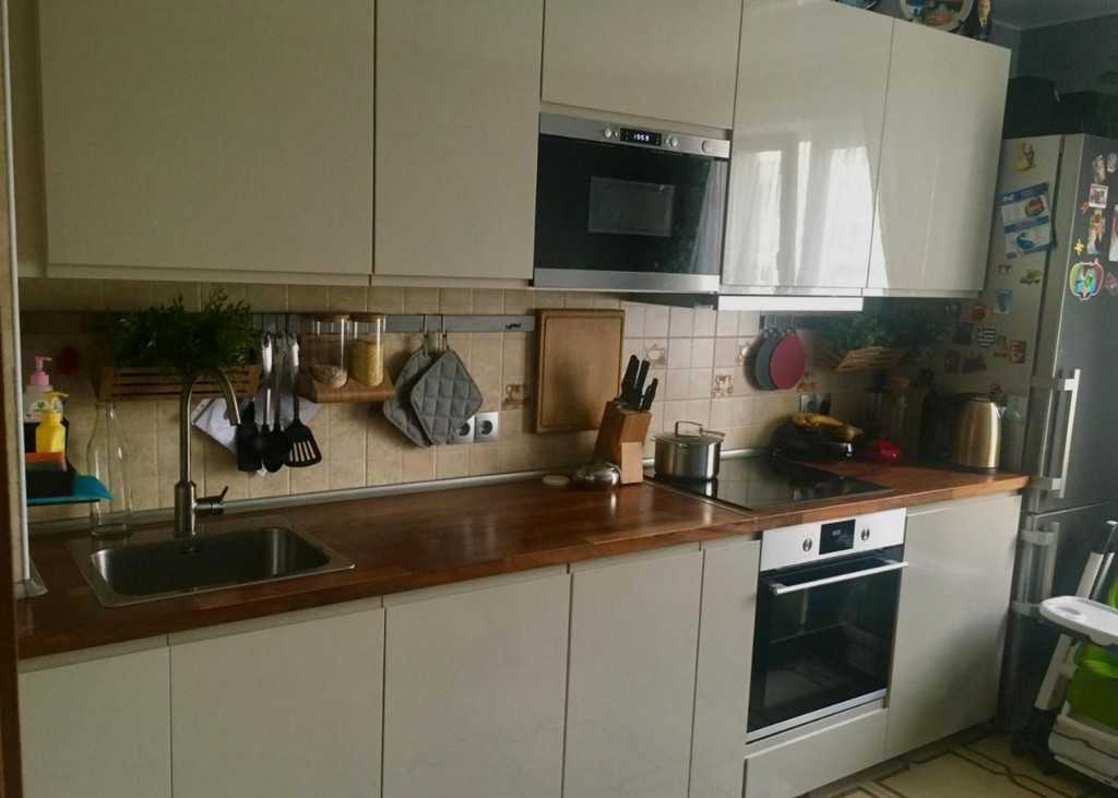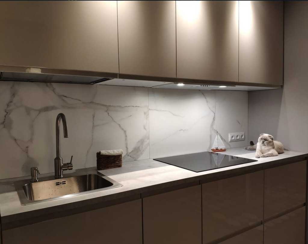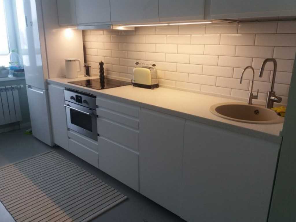 - У меня почти такого размера, чуть поменьше, углом. Мебель: верхнии+нижнии ящики + столешница, с фасадами средней ценовой категории вышло 80 т+8 т сборка, 2 дня собирали. Техника у них же получилась еще на 90 т.