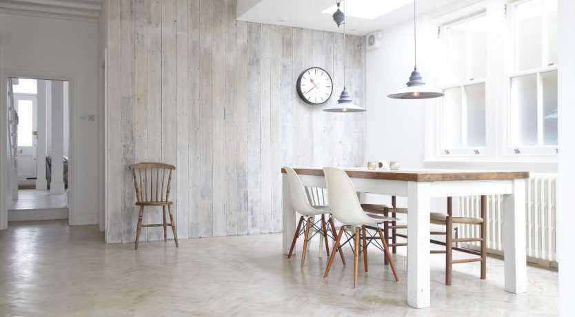 Выбеленный ламинат холодного оттенка – это отличное решение для небольших по размеру кухонь. Он наделяет их свежестью, аккуратностью, подчеркнутой чистотой. Они обретают с ним воздушность и простор.