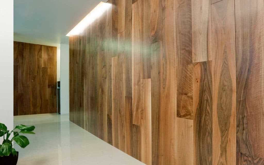 Необходимо учитывать, что горизонтальные планки визуально расширяют пространство, делают его более объемным. В случае с небольшой высотой потолка желательно укладку делать не до самого верха, поскольку это позволит зрительно увеличить объем помещения.