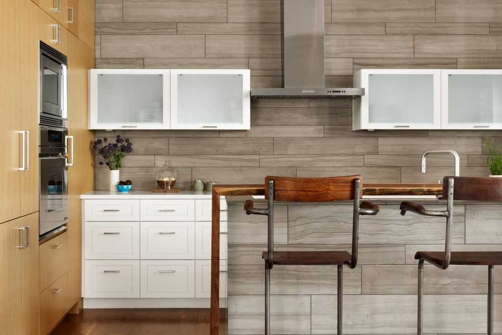Варианты расположения досок на стене кухни