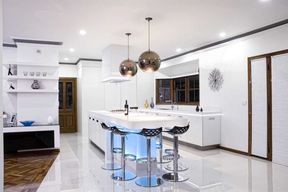 Исходя из этого, светильники следует приобретать в определенной последовательности. Вначале необходимо подобрать светильники для рабочей зоны, затем выбрать красивую люстру или потолочный светильник для обеденной зоны или барной стойки, и в заключение следует заняться общим освещением и подумать о декоративной подсветке.