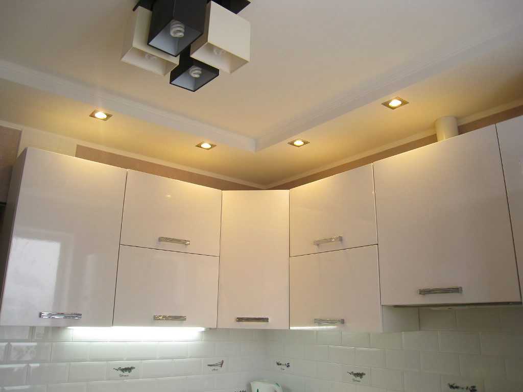 Чаще всего для этого используют точечные светильники, которые встраивают в многоуровневый потолок либо в верхний ярус кухонной мебели. В последнее время все чаще стали использовать светодиодную ленту, которую установить гораздо проще.