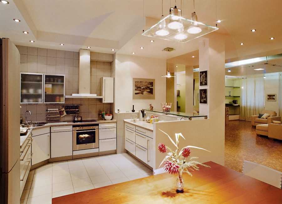 Освещение кухни зависит не столько от площади комнаты, высоты потолка и условий эксплуатации, сколько от типа потолочного перекрытия.