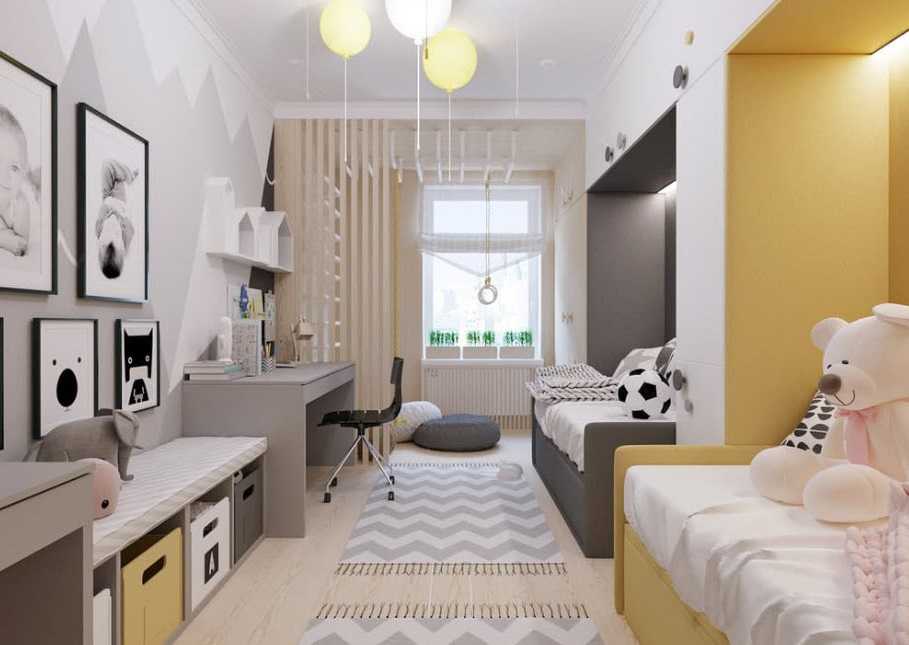 Современный дизайн детской комнаты для двоих детей продумывают в деталях