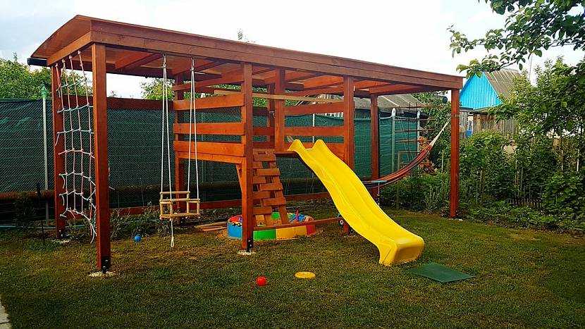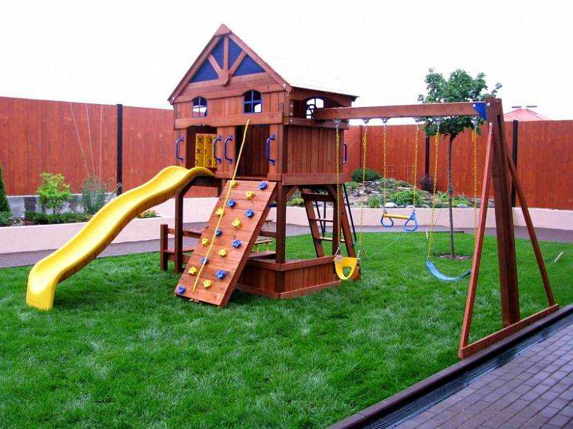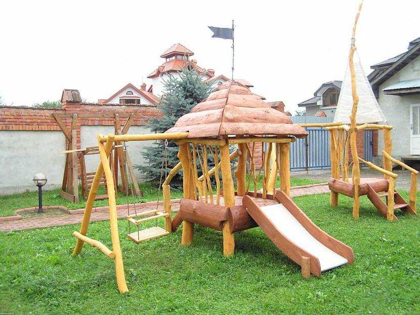 Детская площадка с домиком из бревенИсточник homegar.ru