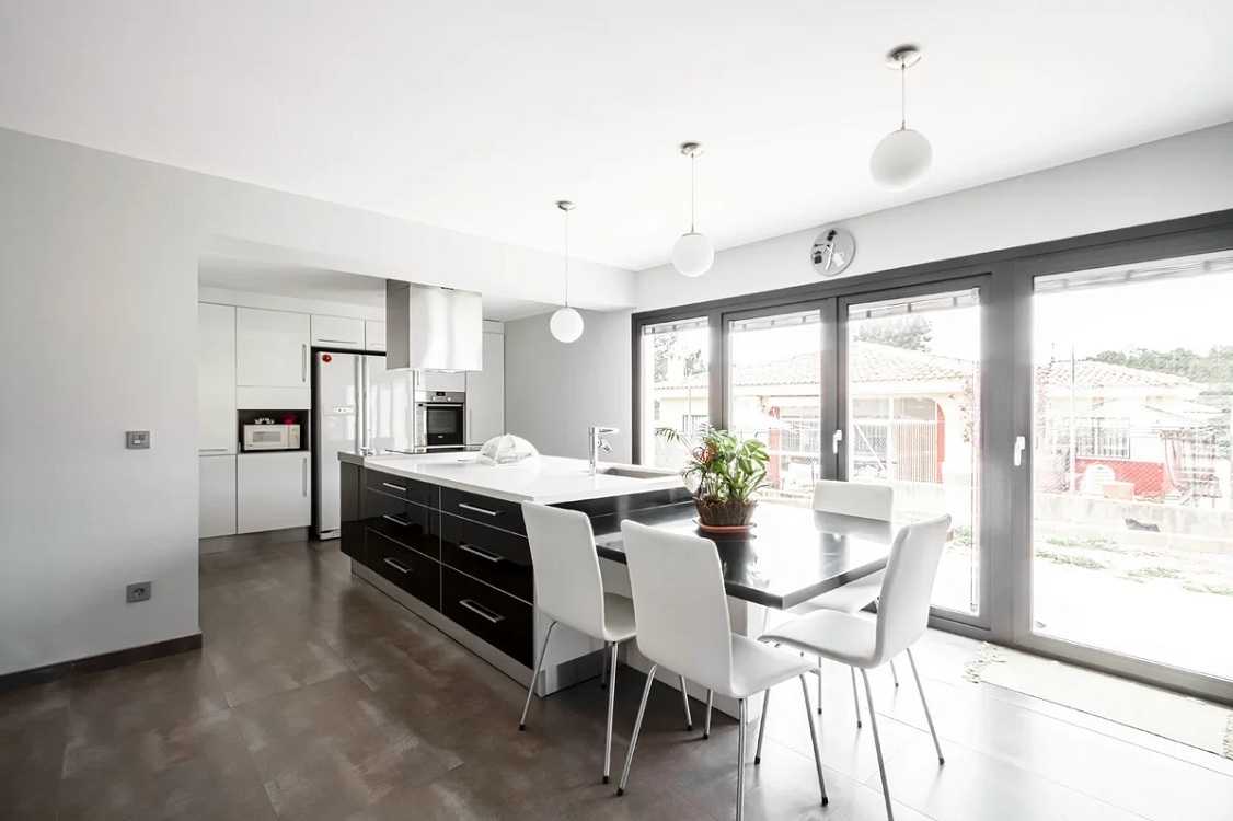 Бетон с деревом, стекло с металлом, серый с нейтральным из светлого дерева, декорирование помещений цветами, большие окна, дневной свет сделают кухню без помех — для людей, которые любят использовать свое свободное время для важных вещей.