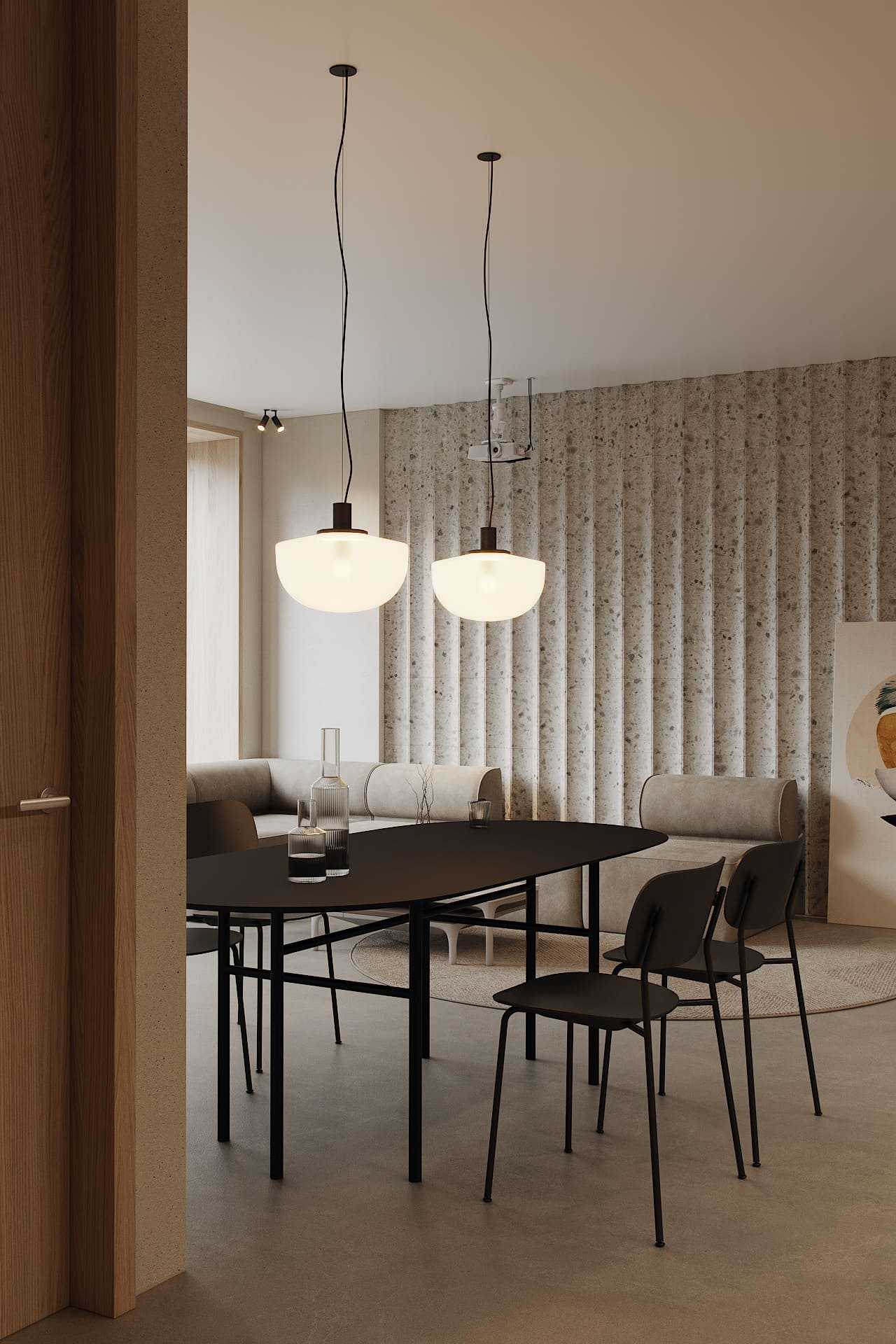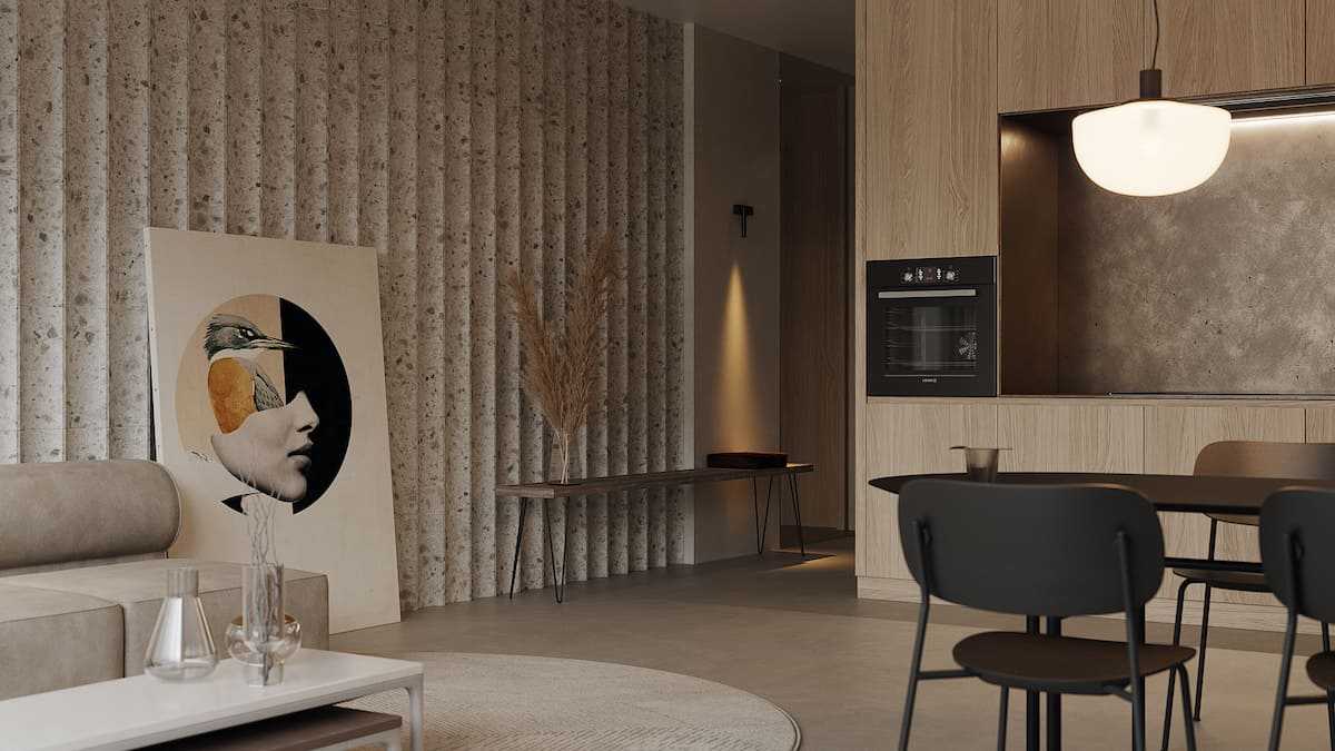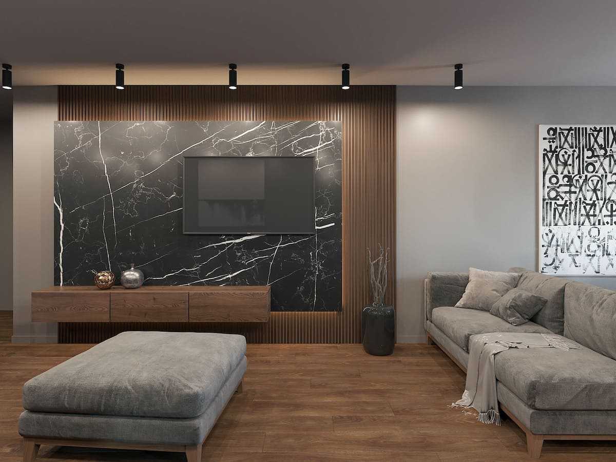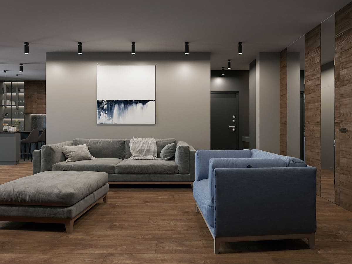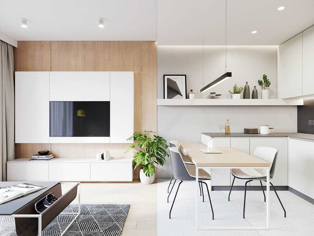 В такой ситуации его можно зонировать, разделив посредством модуля из дерева, разных напольных покрытий и светильников.