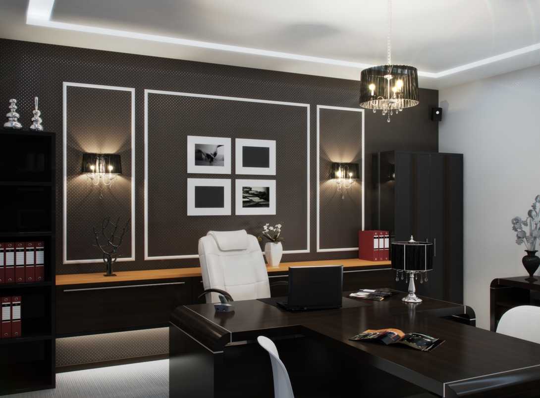 Рабочий кабинет не обходится без удобных мебельных изделий: кресла, компьютерного стола, на котором должно уместиться все необходимое и дополнительных шкафчиков.