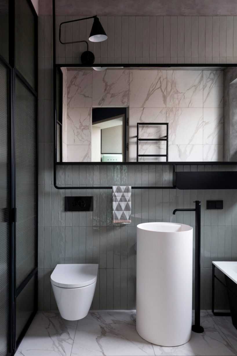 Исполнение может быть стандартным, минималистичным, богемным, технологичным и близким к индустриальному стилю. В этом сможет помочь мрамор, красивая плитка и сантехника, оформленная под старину.