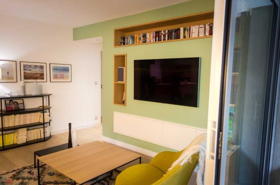 Ниша для телевизионной техники или аквариума требует того же цвета, что и у стены в целом. Благо отсвет, который будет неизбежным, позволит нише играть новыми красками.