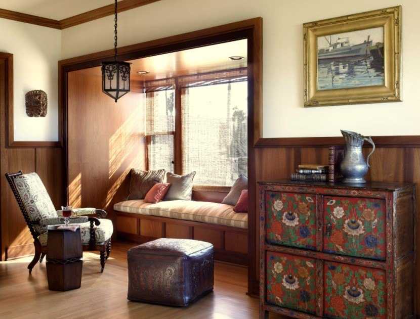 Данное решение позволяет сформировать уютный уголок, отличающийся, не только красотой, но и практичностью. При недостатке дневного света, можно оборудовать углубление встроенными точечными светильниками или другими видами освещения.