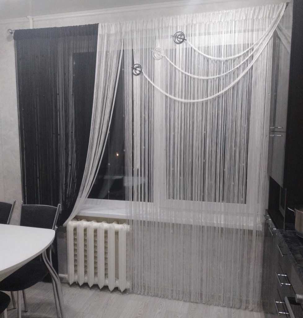 Если нити редкие, то лучше повесить их с прозрачным тюлем. Если расположить нити ближе друг к другу, то повысится плотность шторы. На плотность влияет также и толщина нитей. Специалисты рекомендуют на 1 см ширины использовать 4-5 тонких нитей.