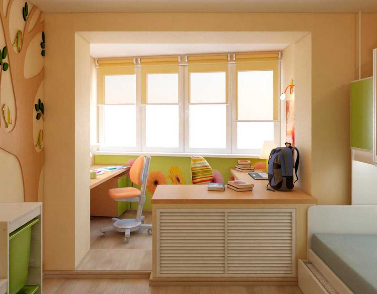 Присоединение лоджии к детской комнате позволяет условно разграничить пространство на зоны для отдыха, игр и занятий. Особенно полезно такое решение семьям, в которых воспитываются 2 детей, каждому из которых находится отдельное место для занятий по интересам.