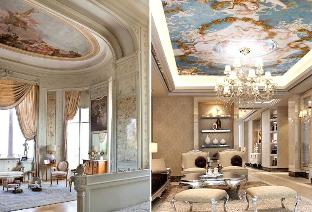 Если интерьер помещения оформляется в стиле неоклассики, актуальными становятся натяжные потолки, на которых изображены великолепные фрески эпохи Возрождения. Они придают любому помещению роскошный аристократичный вид с иллюзией нахождения в царских палатах.