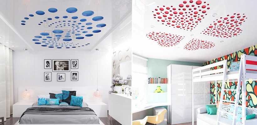 Резной натяжной потолок в интерьере спальни как взрослой, так и детской — выглядит необычно и красиво