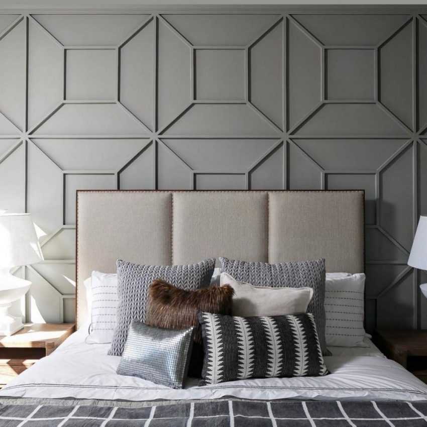 Геометрические фигуры на обоях в спальне, правильные цвета