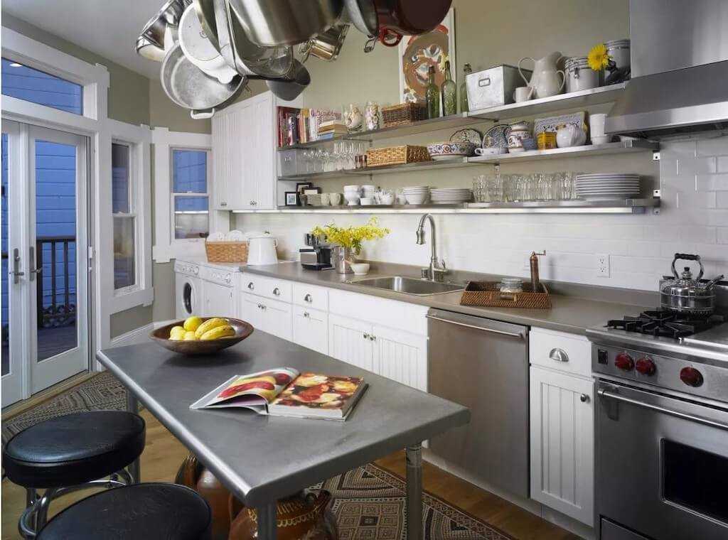 Полки из нержавейки или утонченные металлические решетки, не отягощают и не перегружают интерьер, делая его по-настоящему стильным.