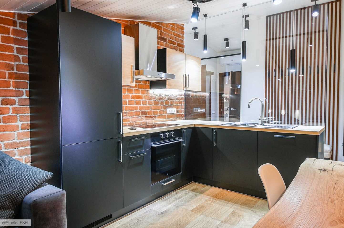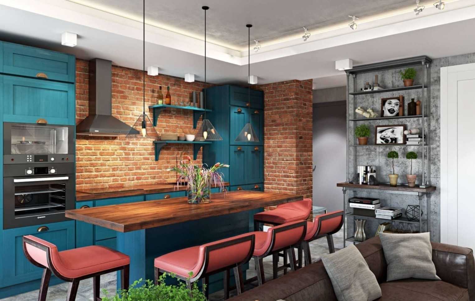 Отказ от верхних шкафов можно считать и демонстрацией несогласия с привычными шаблонами, и смелой заявкой на расширение границ. Эта идея как нельзя лучше вписывается в философию стиля лофт, делающего ставку на максимум свободного пространства и суровые промышленные мотивы в интерьере.