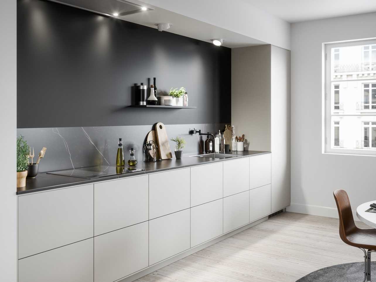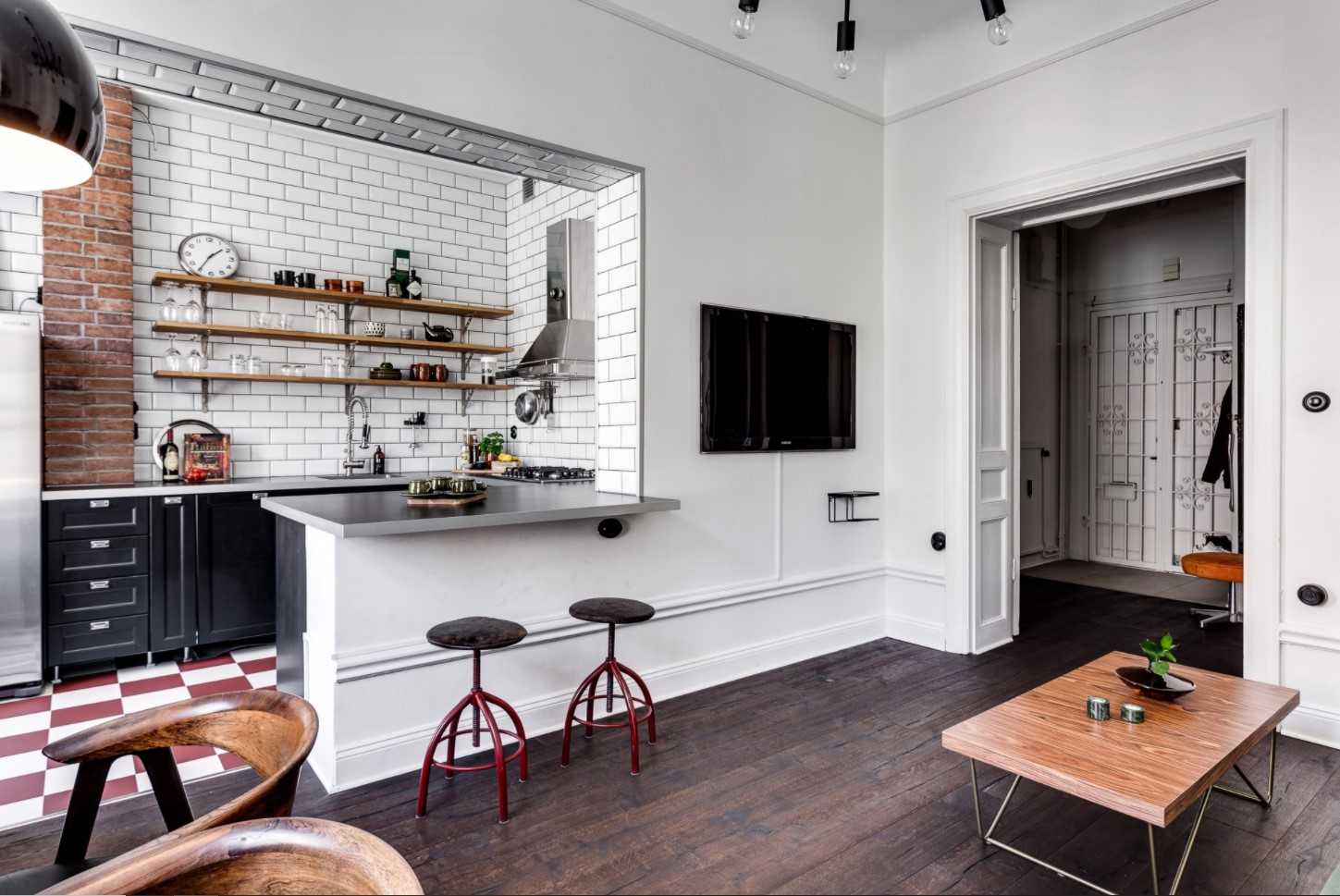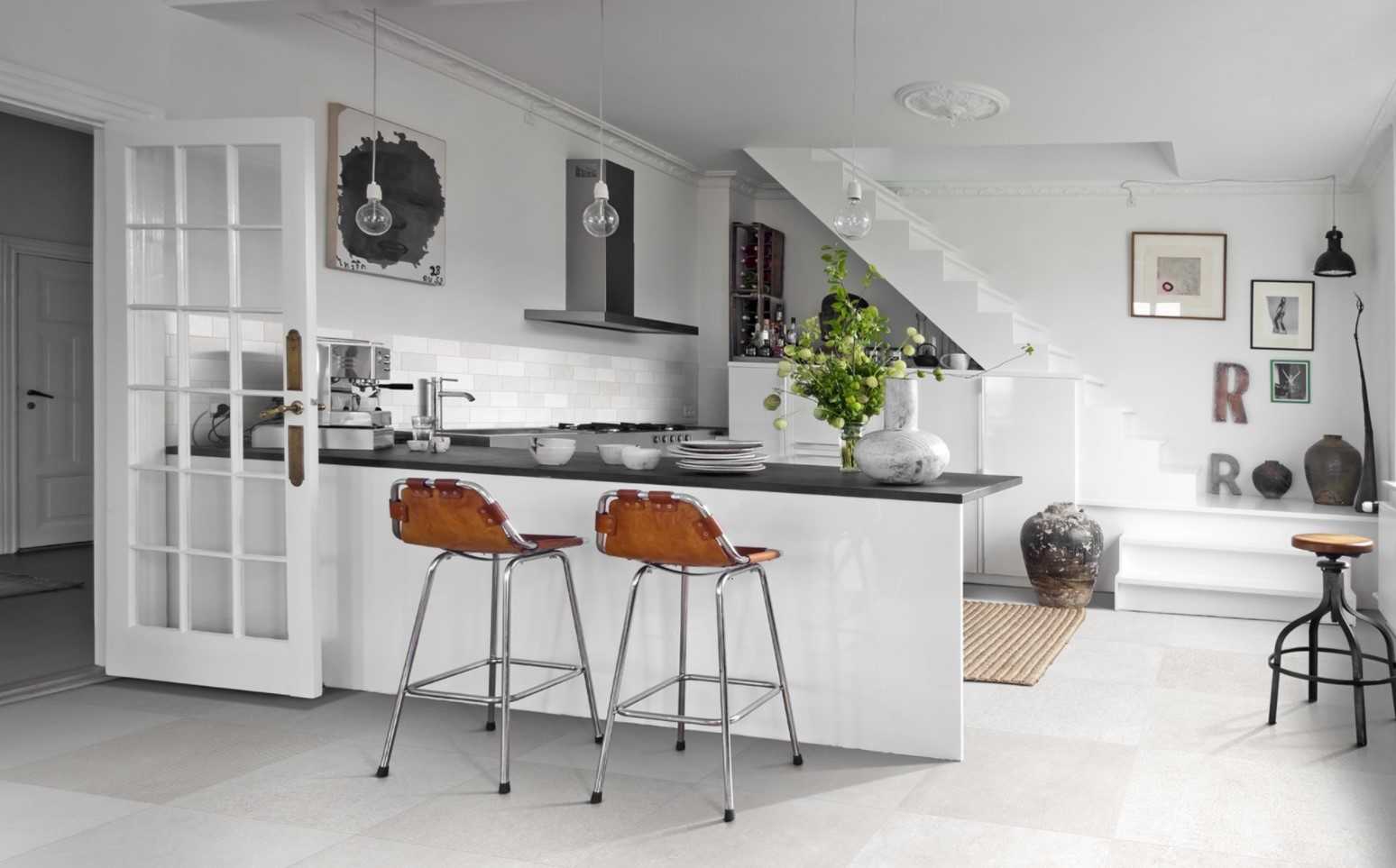 Если лофт впечатляет акцентами и масштабом, то минимализм — правильной геометрией и проработкой каждого элемента в комнате. Одноярусные кухни как будто созданы для таких аскетичных современных интерьеров, где есть необходимый простор и нет ничего лишнего. Доминирующий цвет — белый. Выступает без компаньона либо аккуратно разбавляется нейтральным серым.