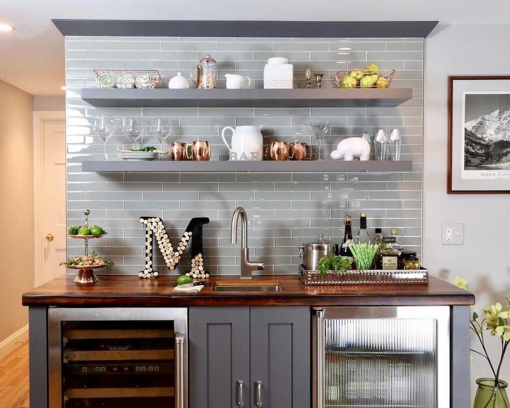 5. Для многих стилей интерьерного дизайна навесные открытые полки для кухни являются элементом обязательным.