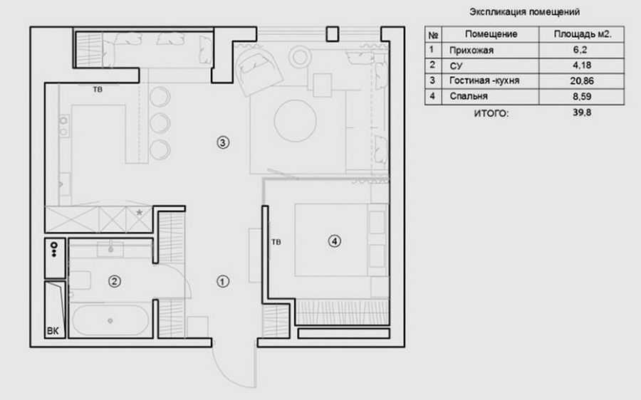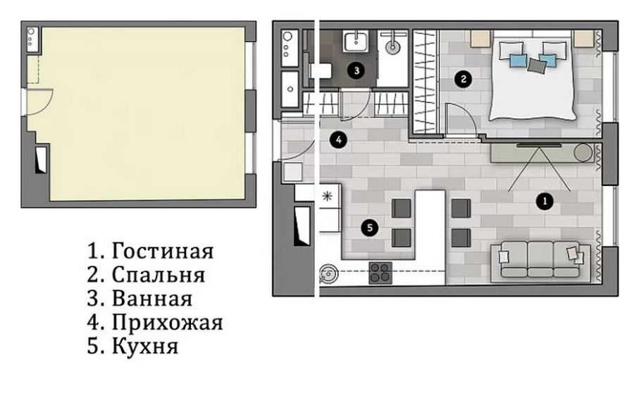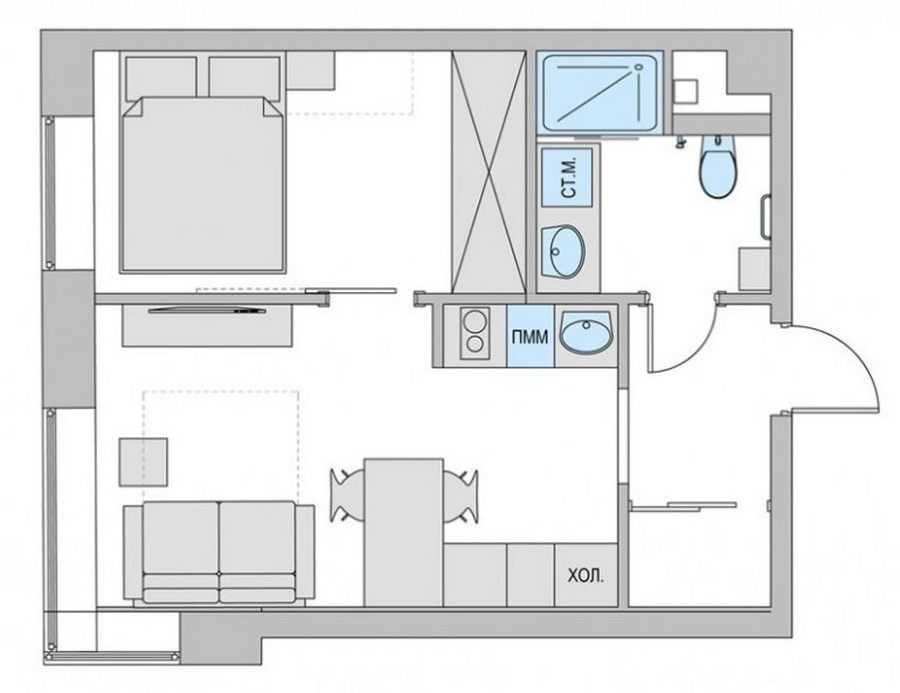 Варианты перепланировки однокомнатной квартиры в двухкомнатную разной площади