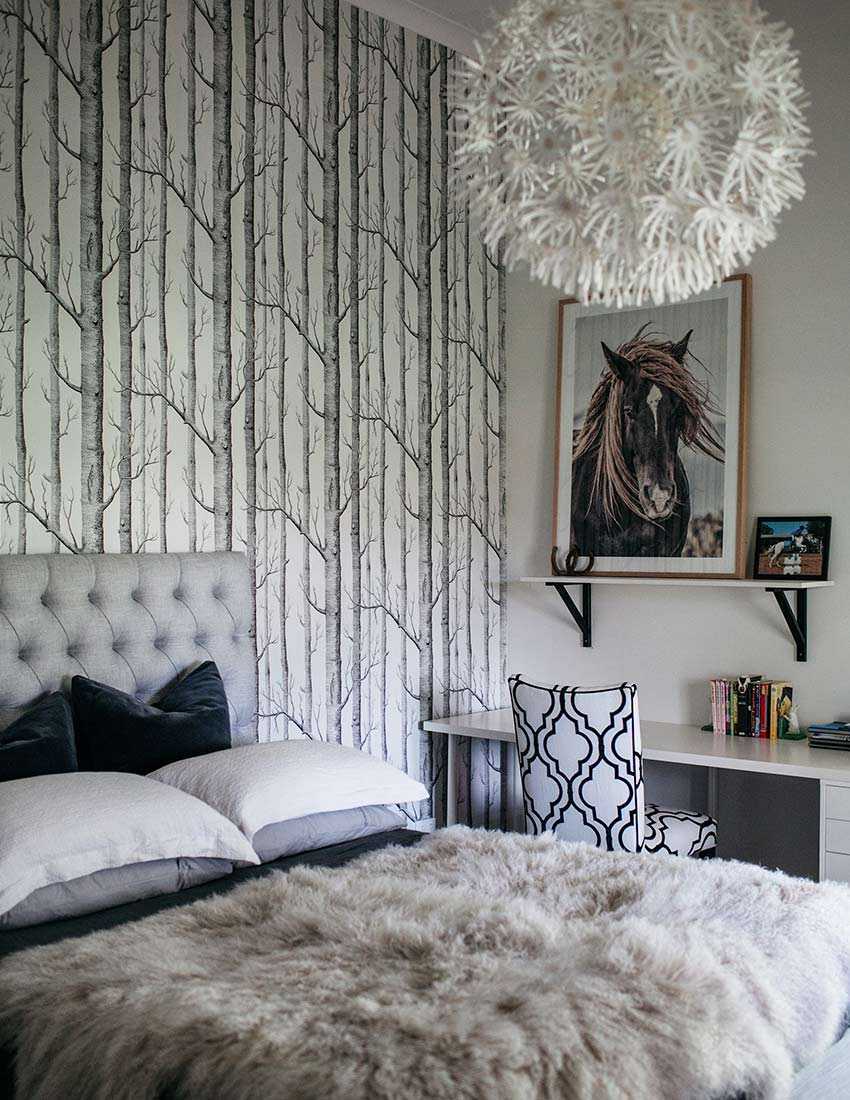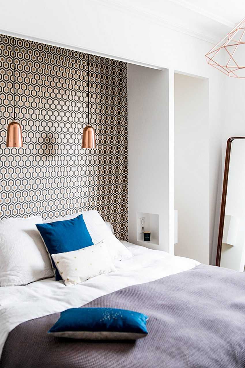 Метод разделения стены и особенности поклейки обоев в спальне: фото в интерьере
